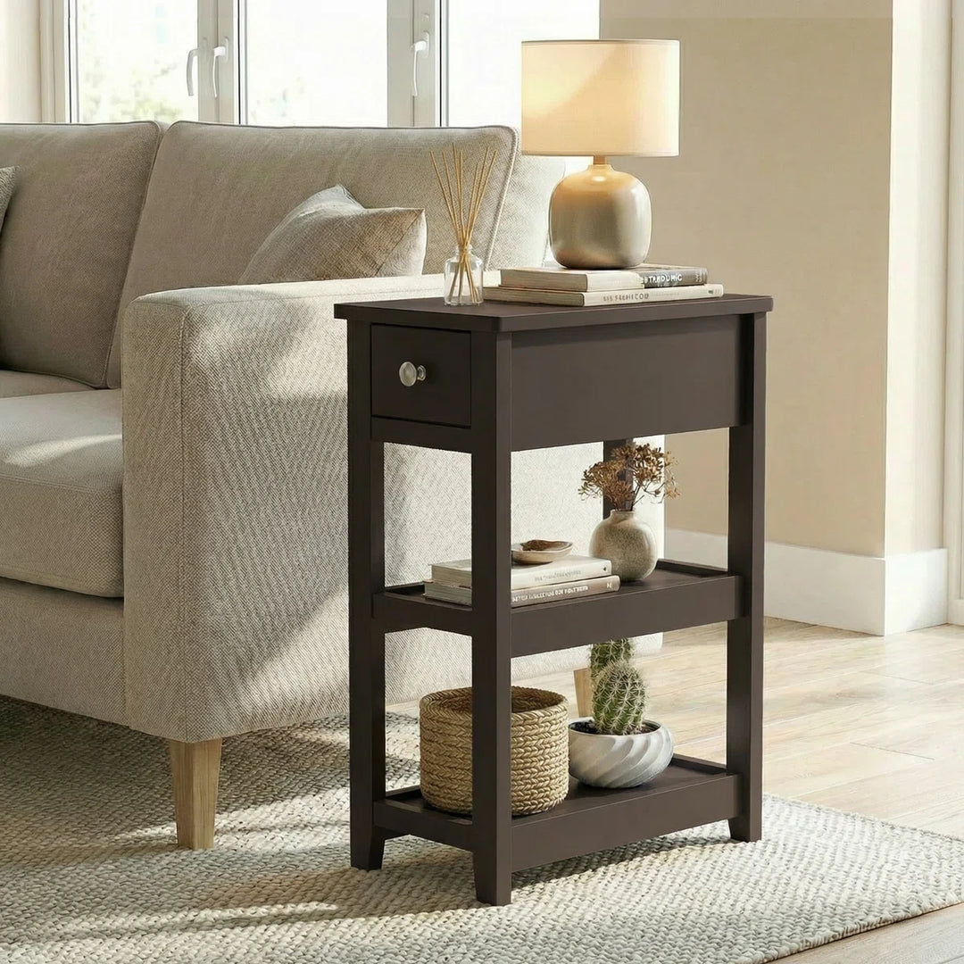 BROWN NARROW SIDE TABLE WITH DRAWER