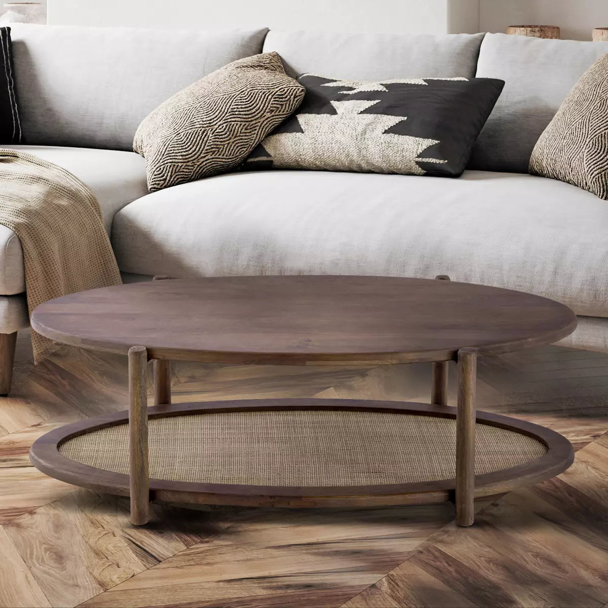 GARAM, SC-106, coffee table, mango wood, cane shelf, 47'' W x 16'' H x 23 1/2'' D