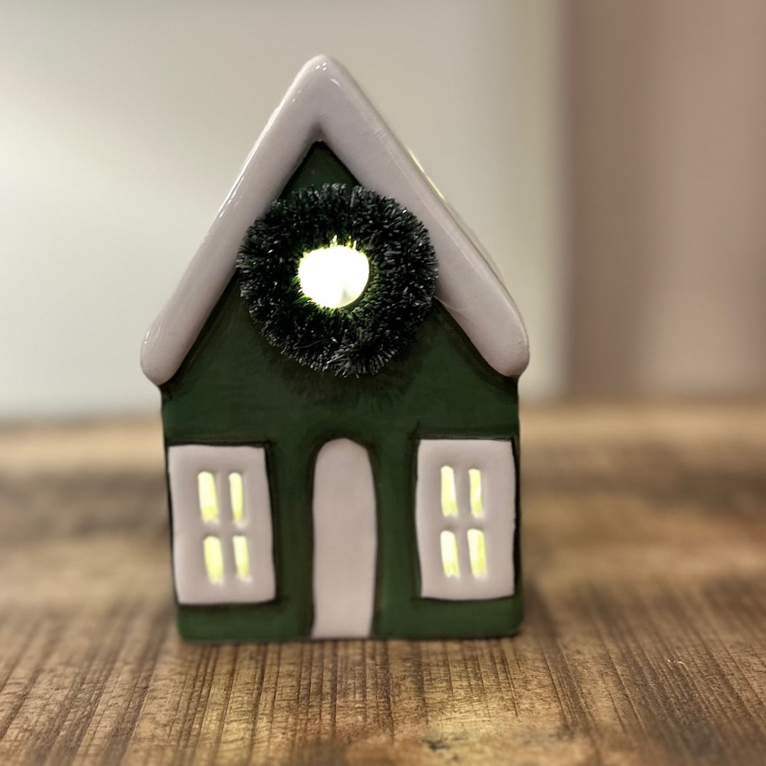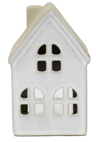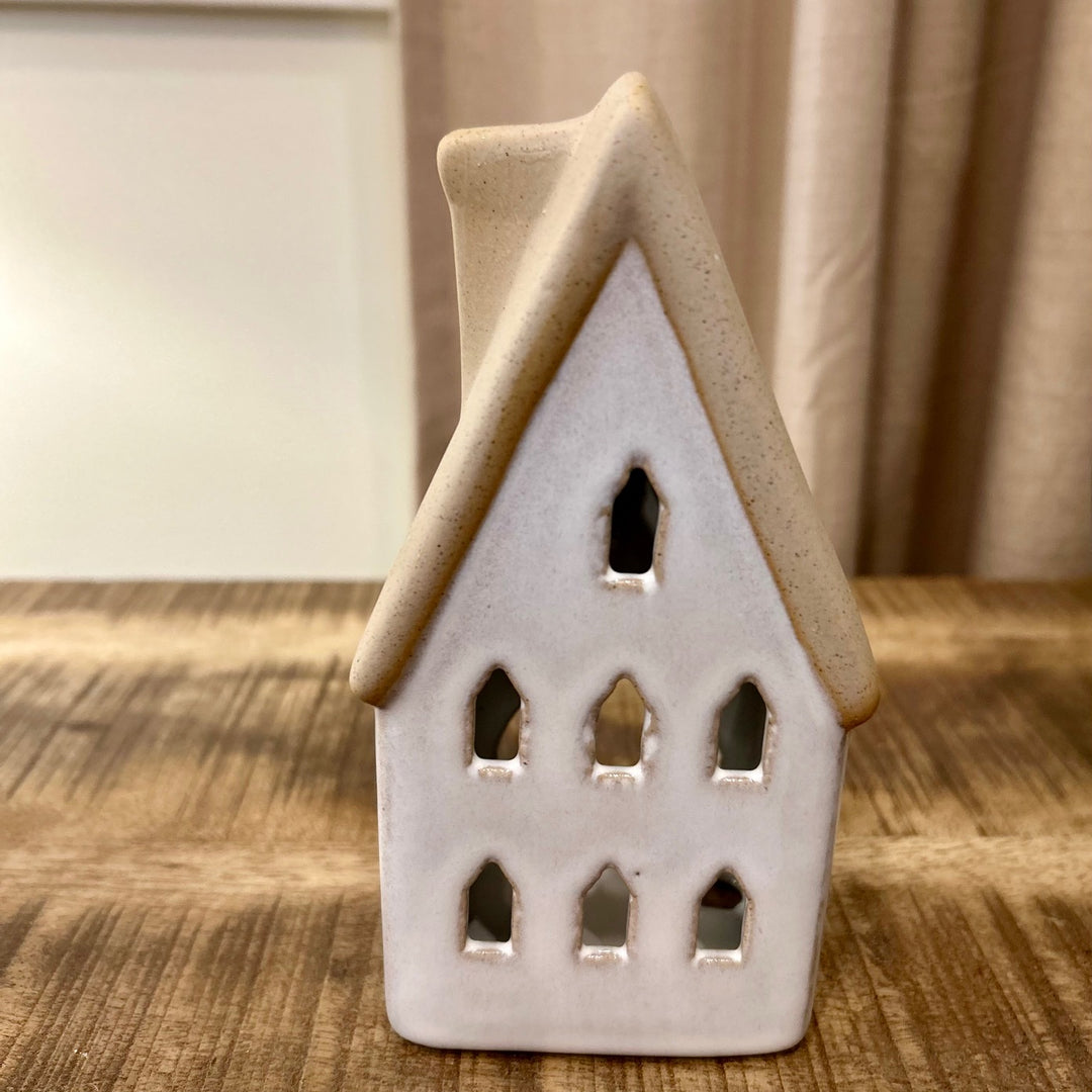 WHITE CERAMIC COTTAGE TEALITE HOLDER