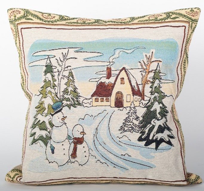 CREAM EMBROIDERED & FOIL PRINTED SNOWFLAKE CUSHION